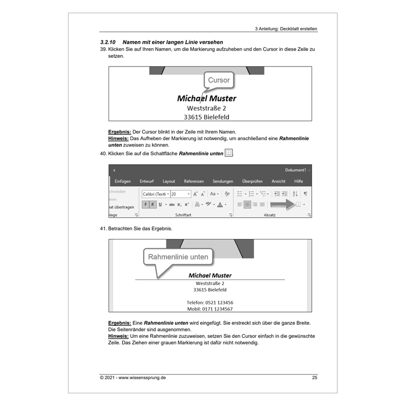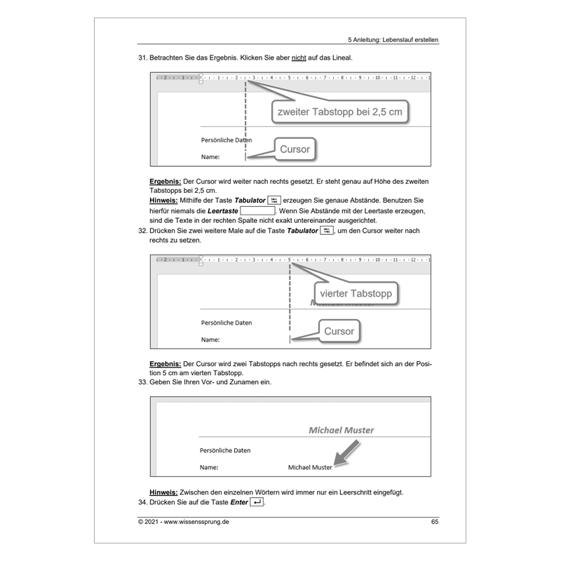 - Erstellen eines einfachen Lebenslaufes