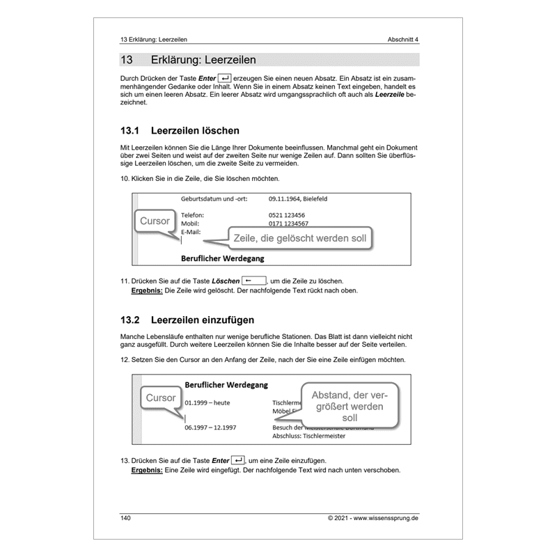 - Erstellen eines einfachen Lebenslaufes