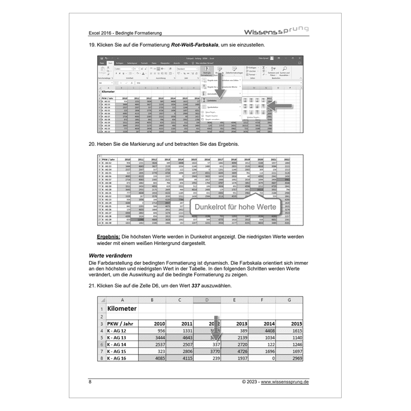 Mit dieser Anleitung analysieren Sie die Kilometerstände eines Firmenfuhrparks. Der Leasing-Vertrag der Fahrzeuge erlaubt 10.000 Kilometer pro Jahr. Mithilfe der bedingten Formatierung können Sie die Werte automatisch nach ihrer Höhe einfärben.
