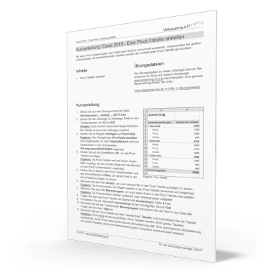 Diese Kurzanleitung beschreibt, wie Sie eine Pivot-Tabelle erstellen.