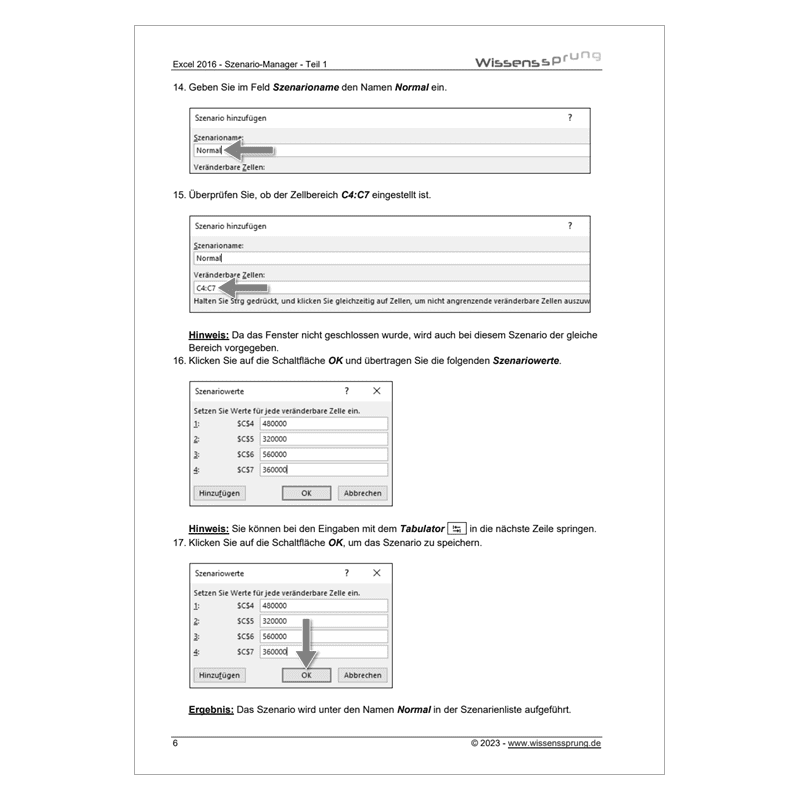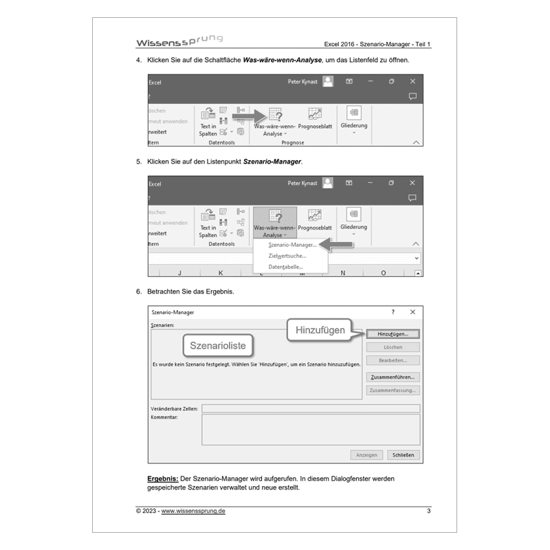 In dieser Anleitung erzeugen Sie drei Umsatzprognosen. Durch den Einsatz des Szenario-Managers können Sie die Werte auf Knopfdruck in Ihrer Tabelle austauschen.