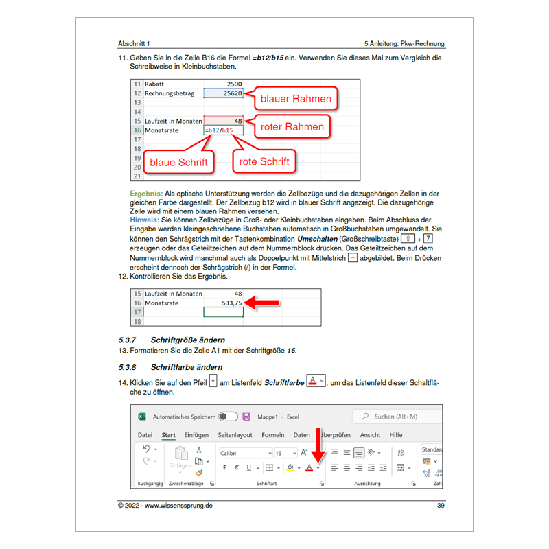 • Formatieren (Gestalten) von Texten, Zahlen, Zellen und Tabellen