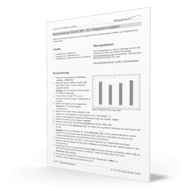 Diese Kurzanleitung beschreibt, wie Sie Diagramme aus Datenbereichen erstellen und Registerkarten umbenennen.