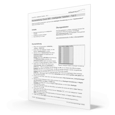 Diese Kurzanleitung beschreibt, wie Sie mit der bedingten Formatierung und dem Tabellenentwurf Werte hervorheben können.