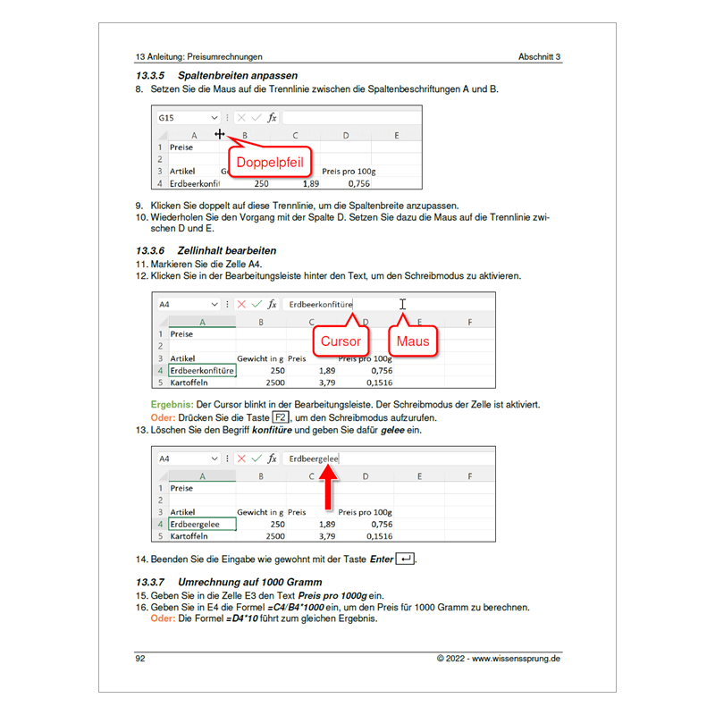 - Korrektur fehlerhafter Inhalte, Formate und Berechnungen