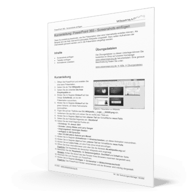 Diese Kurzanleitung beschreibt, wie Sie Präsentation über eine Internetseite erstellen können. Als Beispiel wird die freie Internet-Enzyklopädie Wikipedia vorgestellt. Dazu sollen Aufnahmen der Internetseite gemacht werden und in die Präsentation eingefügt werden.