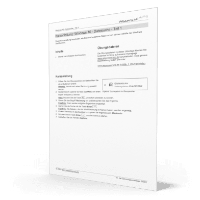 Diese Kurzanleitung beschreibt, wie Sie eine bestimmte Datei suchen können mithilfe der Windows Suchfunktion.