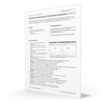 Diese Kurzanleitung beschreibt, wie Sie Dokumente vergleichen können. Beispiel: Sie möchten Ihre Festplatte entrümpeln und sind dabei auf zwei ähnliche Dokumente gestoßen. Sie möchten nun prüfen welche der beiden aktueller ist, um zu entscheiden welcher der beiden gelöscht werden kann.