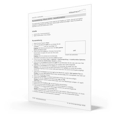 Die AutoKorrektur-Funktion korrigiert Fehler direkt bei der Eingabe von Texten. Sie wird auch gerne verwendet, um wiederkehrende Texte durch Abkürzungen schnell einzufügen. Diese Kurzanleitung beschreibt, wie Sie die AutoKorrektur nutzen.