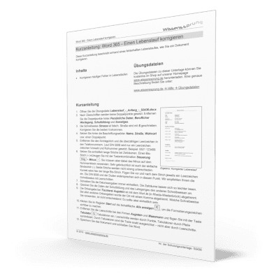 Diese Kurzanleitung beschreibt anhand eines fehlerhaften Lebenslaufes, wie Sie ein Dokument korrigieren.